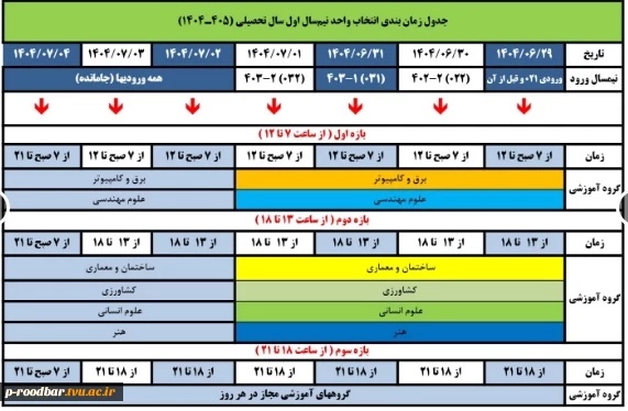 امتیاز دهید : زمانبندی انتخاب واحد و حذف و اضافه - مهر 1404 (041) 2 سهشنبه 25 شهریور 1404 ساعت 12:19